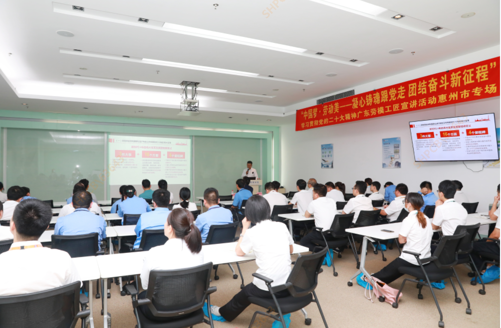 为深入学习宣传贯彻党的二十大精神,切实引领广大职工群众在新时代新征程上踔厉奋发、勇毅前行。5月16日晚,"中国梦·劳动美一凝心铸魂跟党走、团结奋斗新征程”学习贯彻党的二十大精神广东劳模工匠宣讲活动走进lewin乐玩科技。宣讲会由党的二十大代表、学习贯彻党的二十大精神市委宣讲团成员、中海油惠州石化有限公司技能专家高东斌授课,惠州市总工会组宣部部长李伟宏,组宣部高俊华、惠阳区总工会副书记钟耀辉、组宣部负责人米天平、公司工会主席/采购中心总监杨峰伟以及各中心/事业部代表50余人参加。